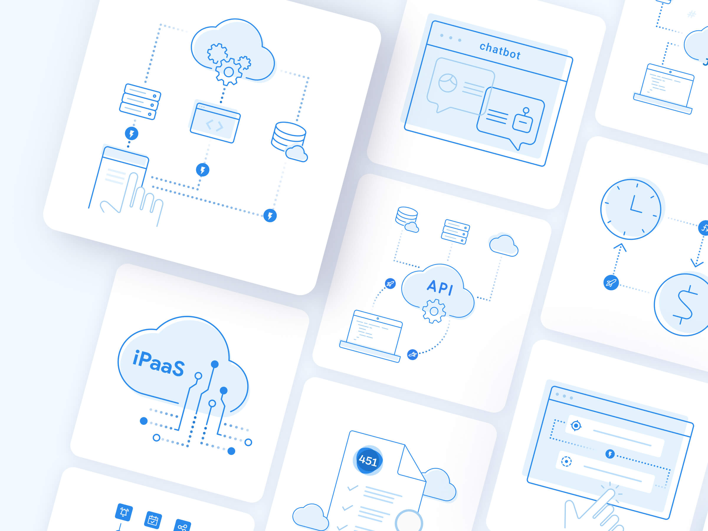 As a part of the marketing redesign of the integration platform – TriggerMesh, we've created a set of custom illustrations to make the web presence more solid and clear.